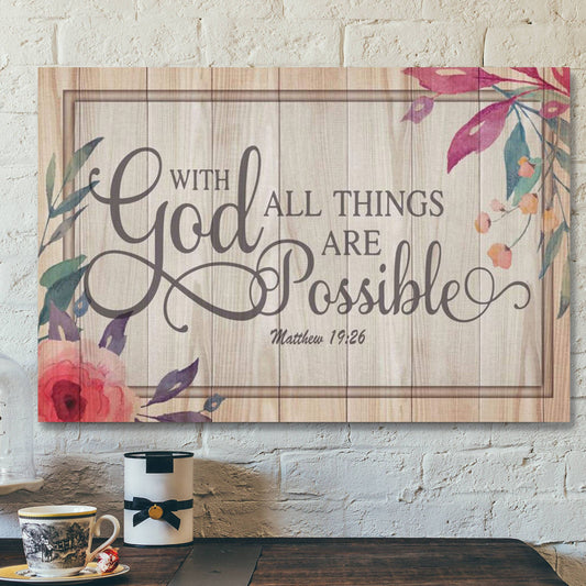With God All Things Are Possible Matthew 19:26 Wall Art - Bible Verse Canvas Wall Decor - Ciaocustom