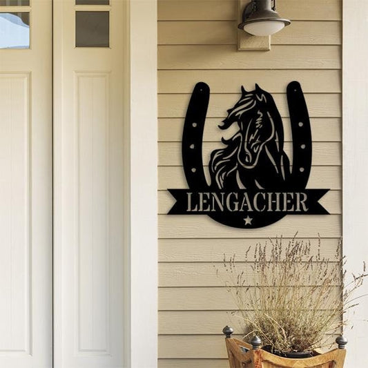 Custom Horse Head Horseshoe Monogram Metal Sign - Metal Horse Wall Art - Metal Decorative Signs