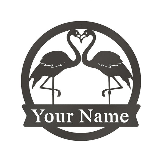 Custom Metal Flamingos Monogram Sign - Outdoor Decor Metal Wall Art - Metal Signs For Home