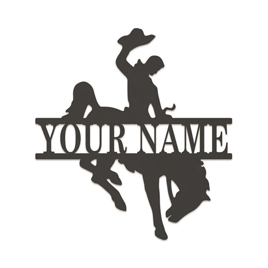 Cowboy Split Bucking Bronco Monogram - Western Cowboy Steamboat Metal Sign