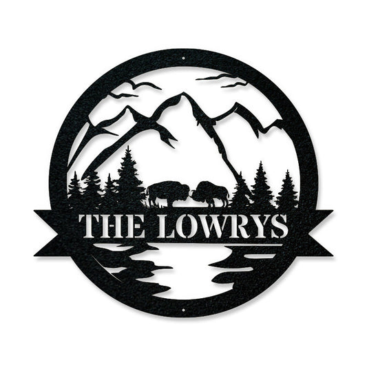 Custom Bison Metal Address Plaque For House - Metal Address Sign - Metal Last Name Signs