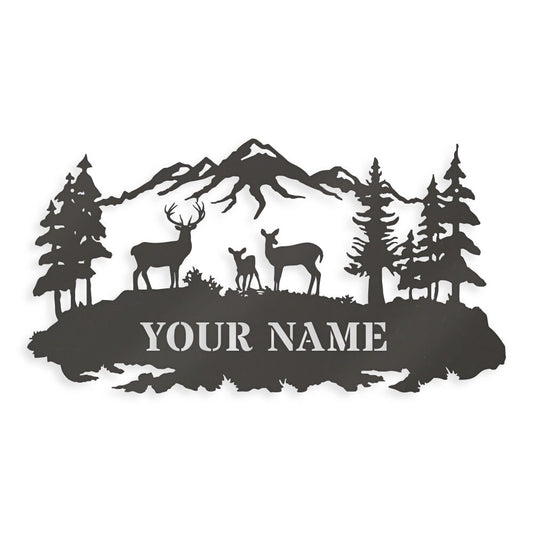 Custom Deer Family Outdoor Scene Monogram Metal Sign - Outdoor Decor Metal Wall Art - Metal Signs For Home
