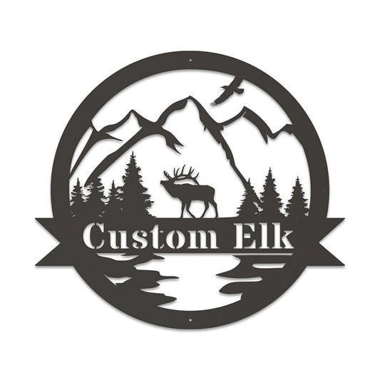 Custom Elk Name Metal Sign - Elk Hunting Gift - Elk Antler Sign - Outdoor Decor Metal Wall Art