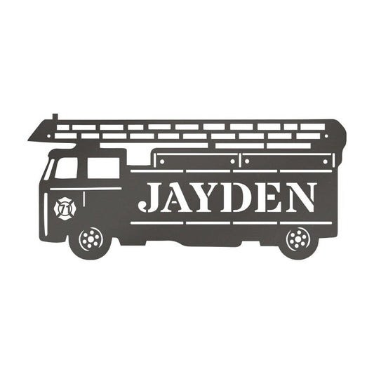 Custom Fire Engine Ladder Truck Monogram - Fireman Metal Sign - Outdoor Decor Metal Wall Art