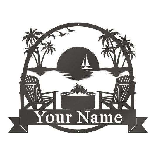Beach Fire Pit Monogram Personalized - Outdoor Decor Metal Wall Art - Metal Signs For Home