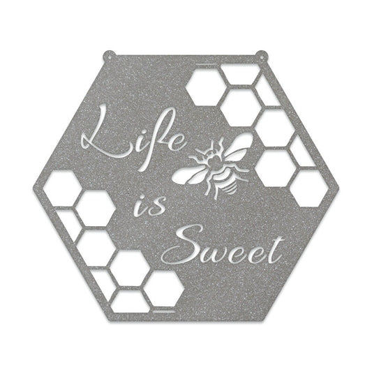 Bee Honeycomb Life Is Sweet Bee Hive Metal Sign - Outdoor Decor Metal Wall Art - Metal Signs For Home