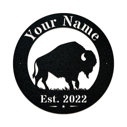 Custom Bison Circle Monogram Sign - Lone Bison Decor - Buffalo Decor - Bison Name Metal Sign