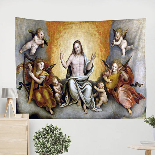 Triumph Of Christ In Paradise With Angels And Cherubs Jesus Tapestry - Christian Tapestry - Religious Tapestry