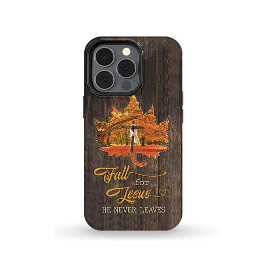 Fall For Jesus He Never Leaves Cross On Autumn Leaves Christian Phone Case - Bible Verse Phone Cases Samsung