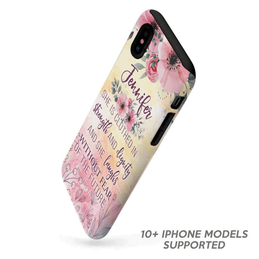 She Is Clothed In Strength And Dignity Proverbs 3125 Personalized Name Phone Case - Scripture Phone Cases - Iphone Cases Christian