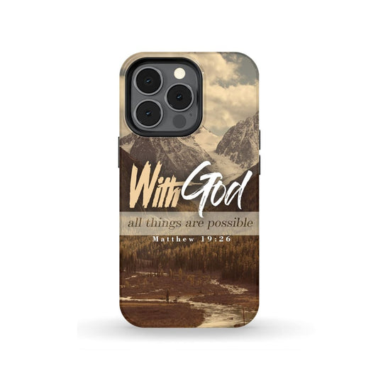 With God All Things Are Possible Matthew 1926 Bible Verse Phone Case - Scripture Phone Cases - Iphone Cases Christian