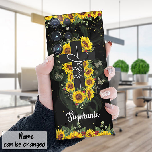 Jesus And Cross - Sunflower - Personalized Phone Case - Christian Phone Case - Jesus Phone Case - Bible Verse Phone Case - Ciaocustom