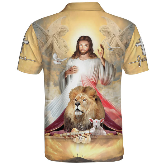 Jesus Potrait And Lion Lamb Polo Shirt - Christian Shirts & Shorts