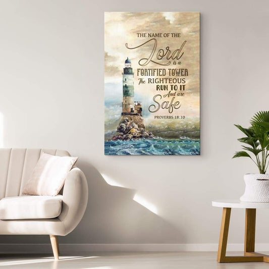 Bible Verse Proverbs 1810 The Name Of The Lord Is A Fortified Tower Canvas Art - Bible Verse Canvas - Scripture Wall Art