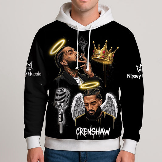 Nipsey Hussle Crenshaw Angel Hoodie Crown and Halo Tribute, Rapper 3D Hoodie, Rap Legends Hoodie