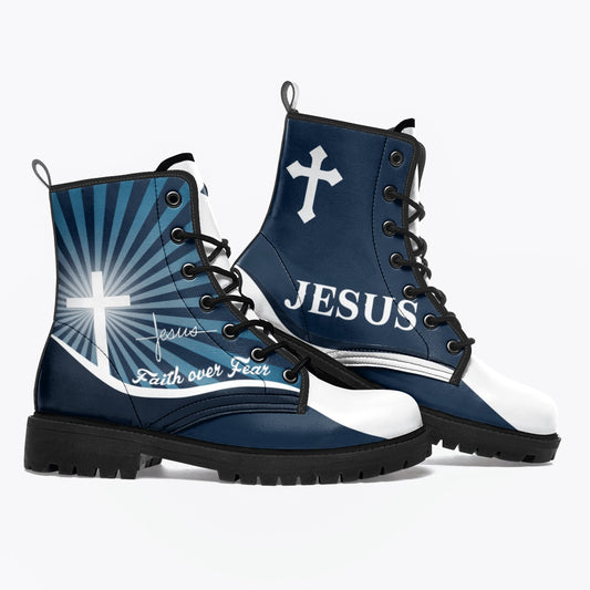 Jesus Faith Over Fear Leather Boots - Christian Shoes For Men And Women