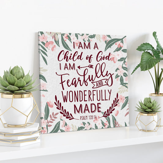 Bible Verse Canvas - A Child Of God Fearfully And Wonderfully Made Psalm 13914 Canvas Print - Scripture Canvas Wall Art - Ciaocustom