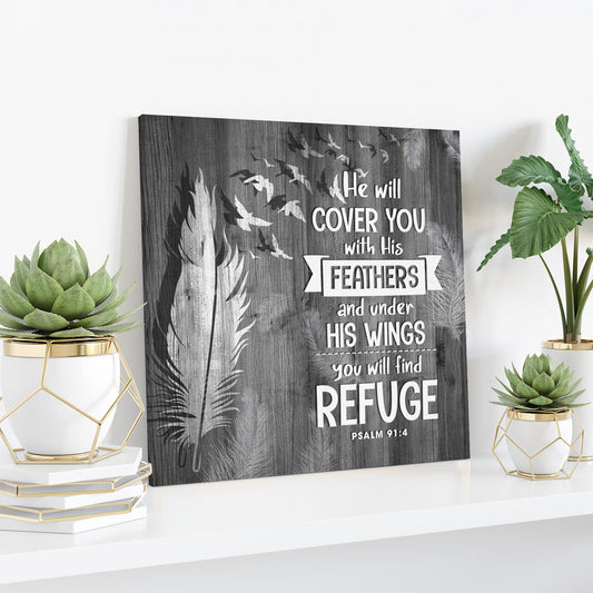 Bible Verse Canvas - Psalm 914 Niv He Will Cover You With His Feathers Canvas Print - Scripture Canvas Wall Art - Ciaocustom