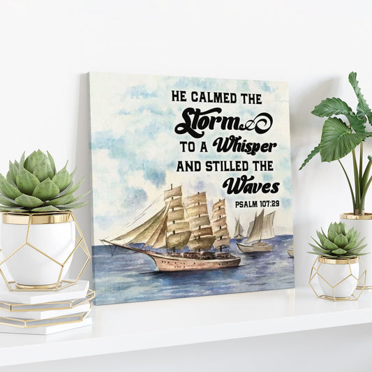 Bible Verse Canvas - Psalm 10729 He Calmed The Storm To A Whisper And Stilled The Waves Canvas Wall Art - Scripture Canvas Wall Art - Ciaocustom