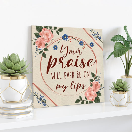 Bible Verse Canvas - Your Praise Will Ever Be On My Lips Canvas Print - Scripture Canvas Wall Art - Ciaocustom