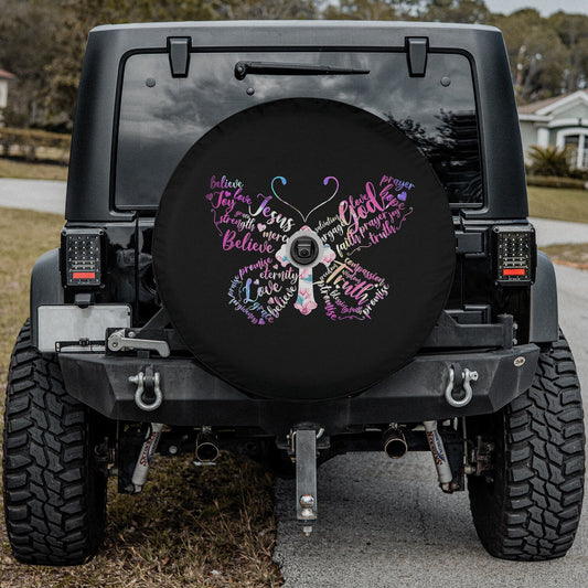 Womens Butterfly Prayer Jesus Christian Cross Floral Pattern Spare Tire Cover - Bible Verse Tire Cover
