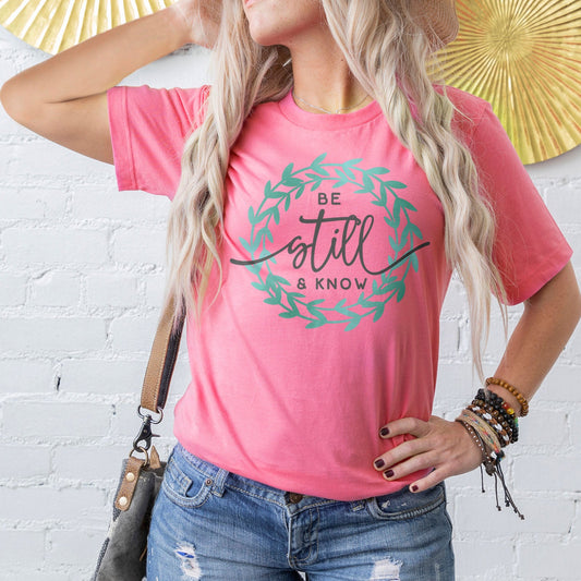 • Be Still And Know Wreath Tee Shirts For Women - Christian Shirts for Women - Religious Tee Shirts