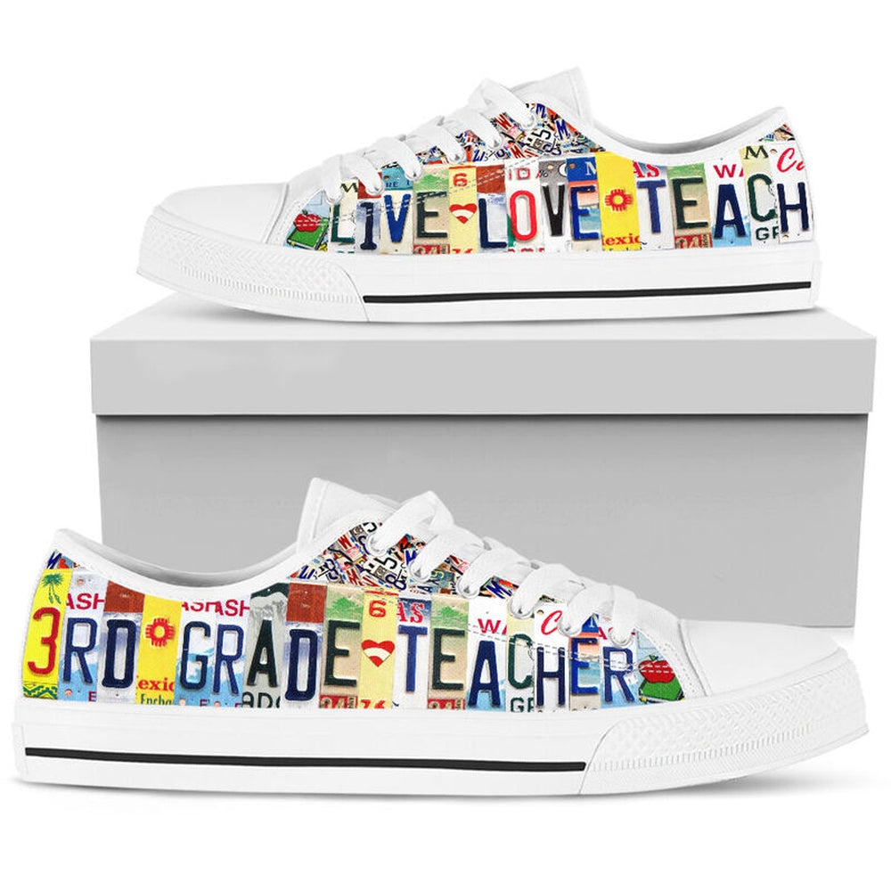 3Rd Grade Live Love License Plates Low Top Shoes, Teacher Shoes, Low Top Sneakers