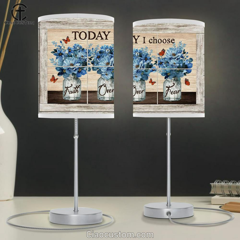 Faith Over Fear Table Lamp For Bedroom - Butterfly Floral - Christian Room Decor