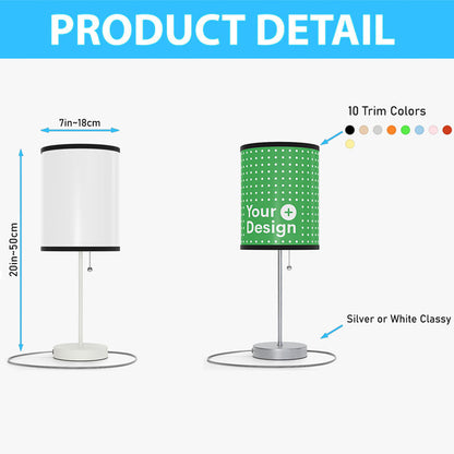 Elevate your space with this stunning table lamp! Its sleek steel base, available in both polished silver and crisp white, exudes modern elegance. Customize your look with the shade, featuring 10 vibrant trim colors to perfectly complement your existing decor. High-resolution printing ensures your designs come alive, making this lamp a true masterpiece of personalization and style.