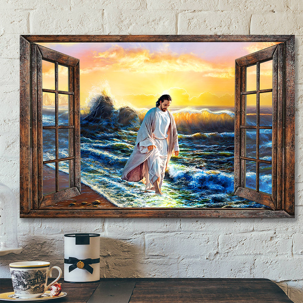God Walks On Water - Jesus Pictures - Christian Canvas Prints - Faith Canvas - Bible Verse Canvas - Ciaocustom