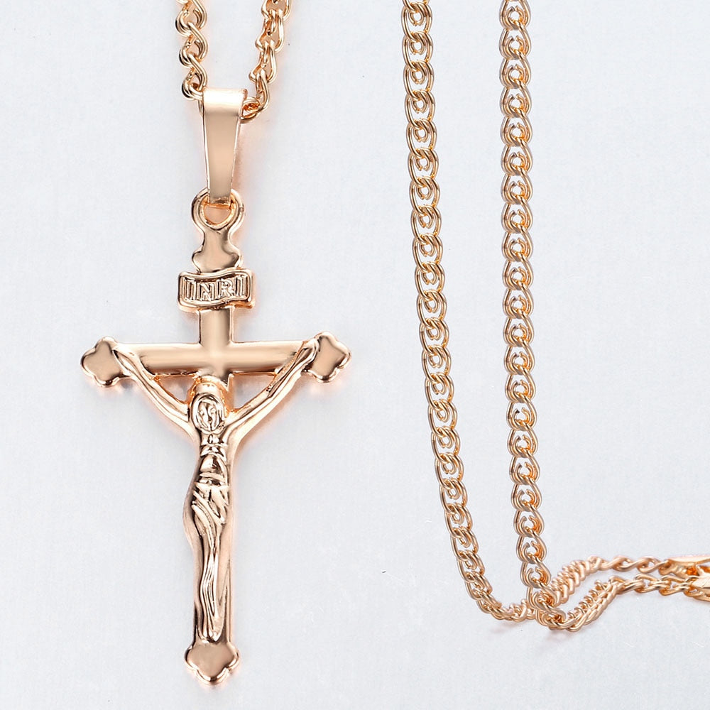 Gold Cross Pendant Necklace With Clear Crystal For Men and Women 5