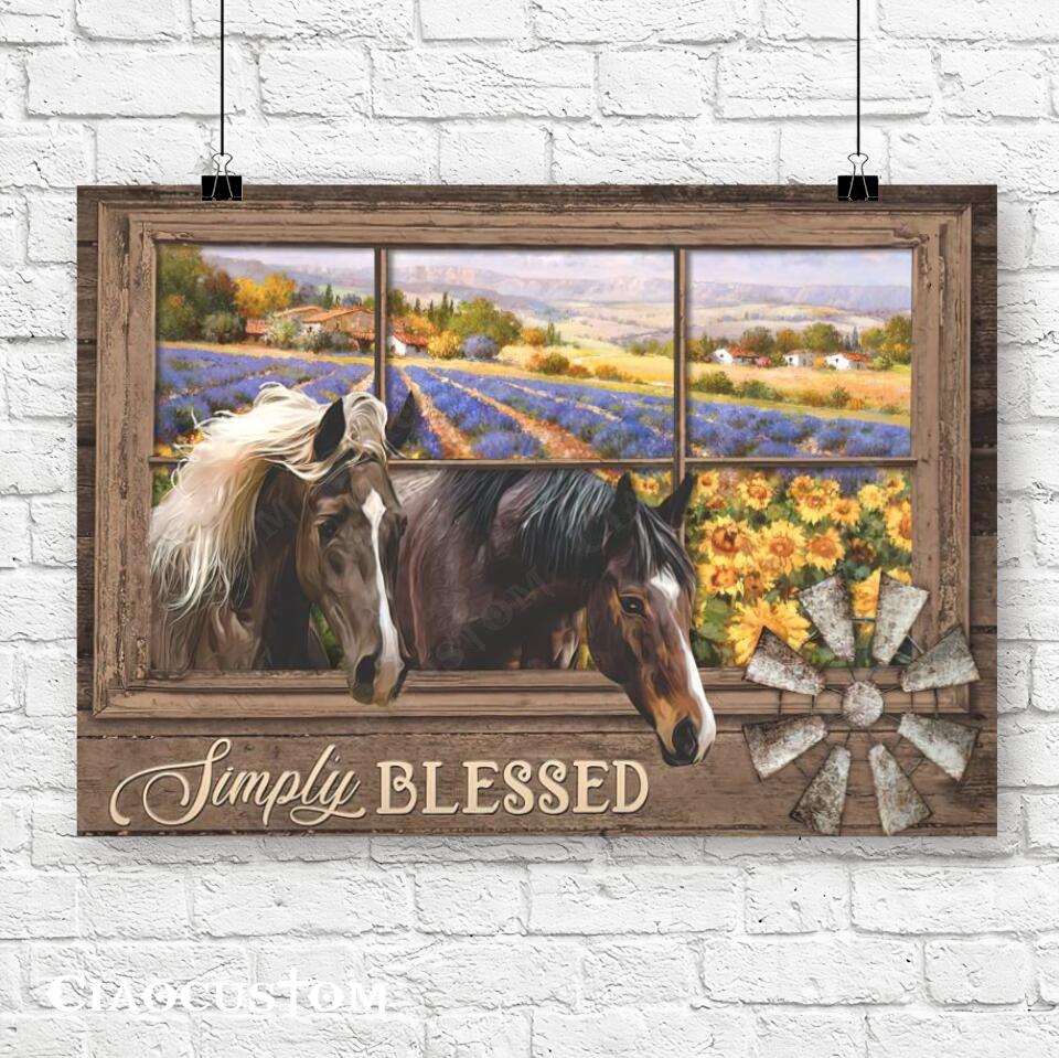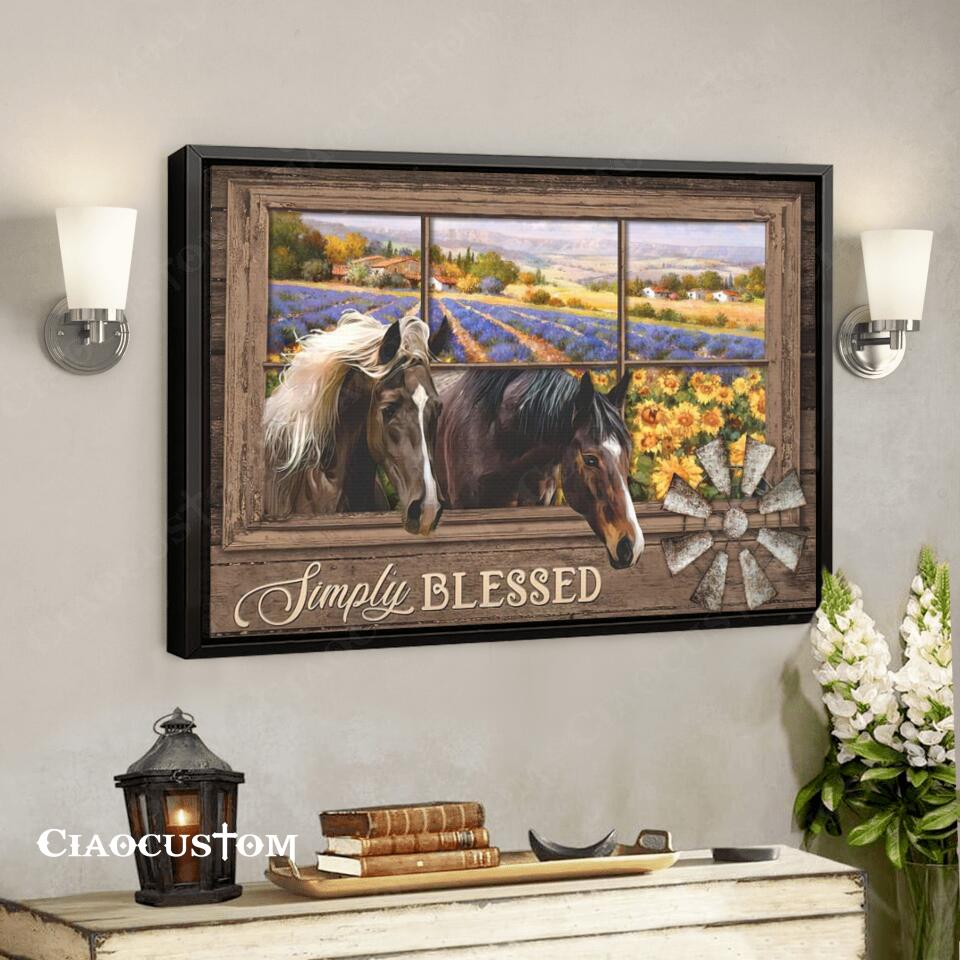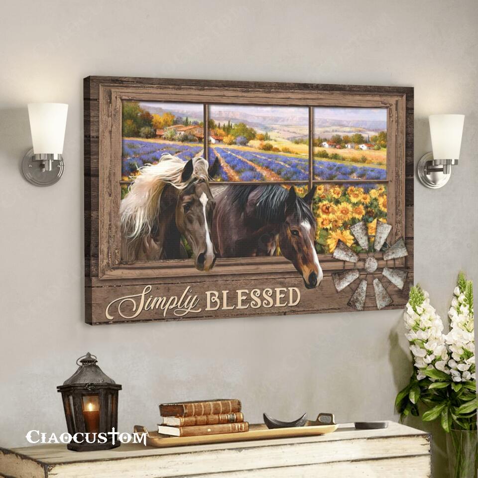 Horse And Sunflower - Simply Blessed Canvas Art - Bible Verse Canvas - Christian Canvas Wall Art - Ciaocustom