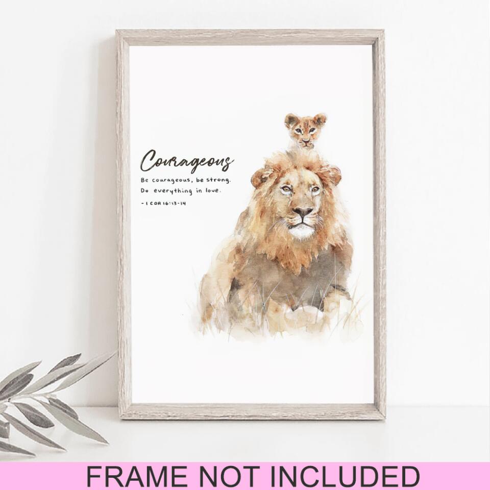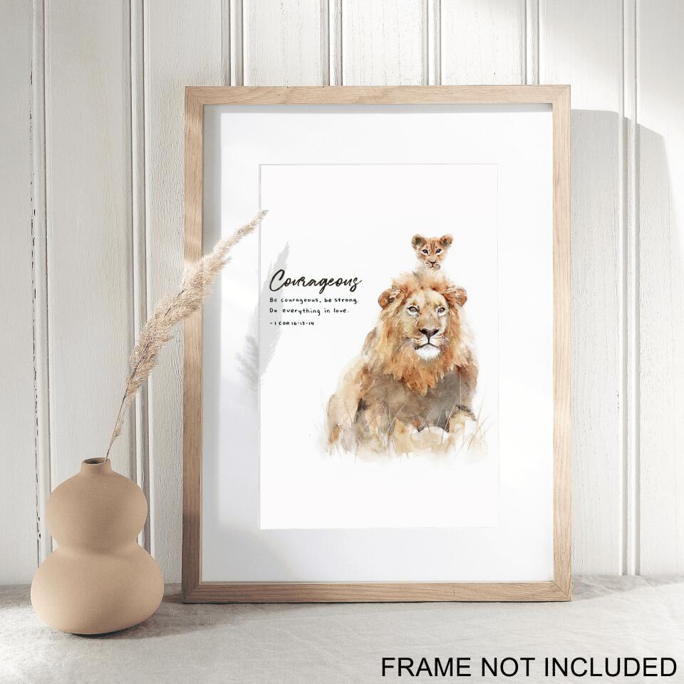 Lion - Courageous Fine Art Print - Bible Verse Wall Art - Best Prints For Home - Gift For Christian - Ciaocustom