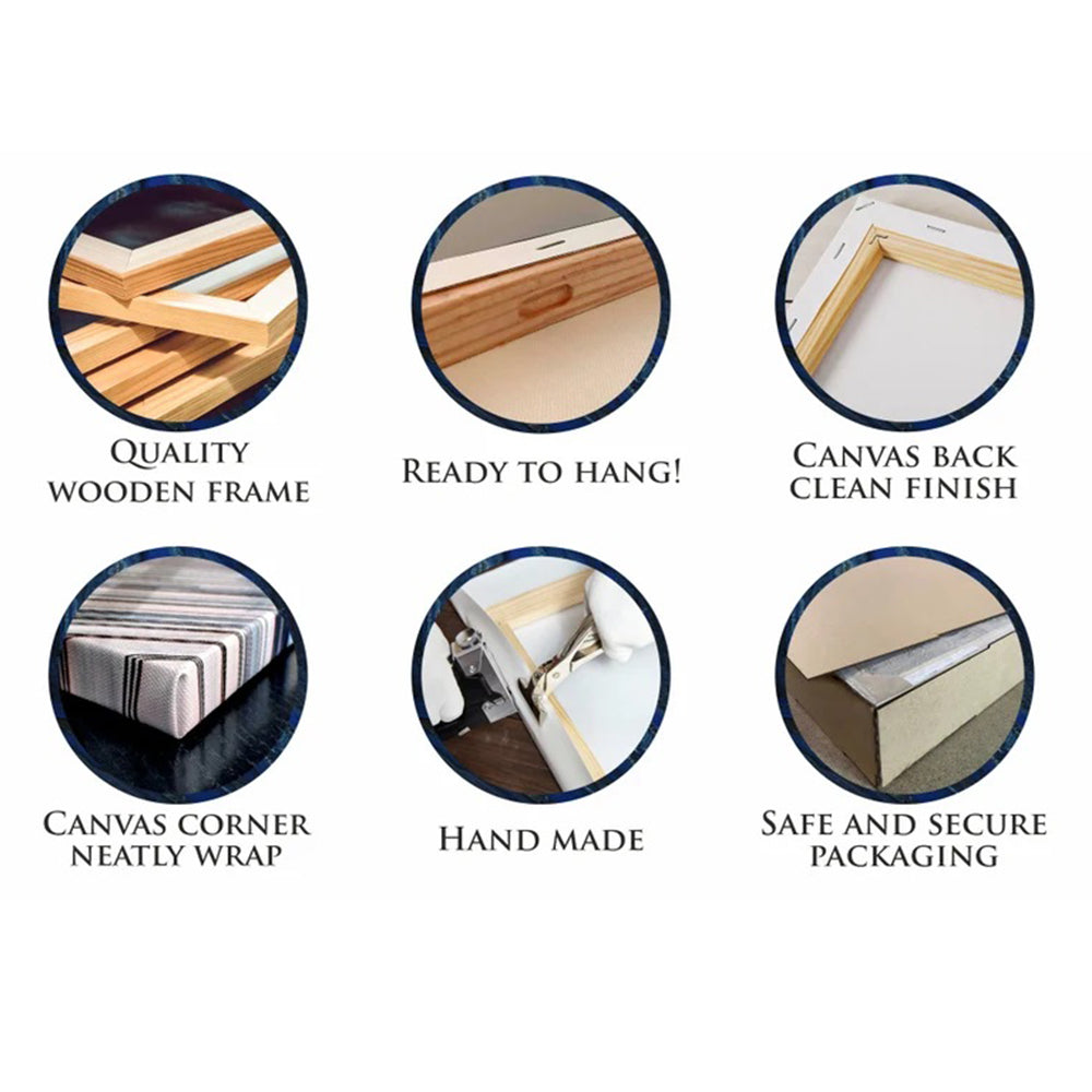 As an illustration, each picture is pre-framed to stretch the canvas. And, the hook is already attached for quick and easy hanging. Therefore, you just need to hang it up after receiving the product.